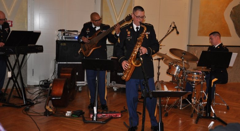Eine Reihe von Konzertbesuchern pilgerte anschließend zum grünen Kursaal. Unter ihnen auch Oberbürgermeisterin Dr. Heike Kaster-Meurer, die das "The Usrareur Standard Jazz Quartett" sehr herzlich als gute alte Freunde begrüßte. In großer Besetzung geben die Militärmusiker jedes Jahr ein Weihnachtskonzert in Bad Kreuznach. Die Männer in ihren schmucken Unfiormen bewiesen sich wieder einmal als exzellente Musiker.