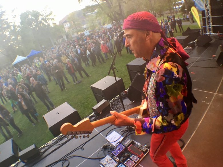 Zum Abschluss eines langen Tages besuchte die Oberbürgermeisterin den "Sommer of Love" im Kurpark Bad Münster, wo die Suggar Daddies den Anfang machten. Weiter ging es mit dem Trio "Purple X" (in der Pause präsentierte das Trierer Tufa-Musical-Ensemble Songs aus dem Musical "Hair"), dann folgte der Top-Act "Mrs. Greenbird".