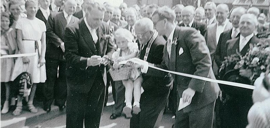 Foto oben: Landrat Philipp Gräff, Bürgermeister Dr. Jungermann (mit Maria Hangen im Arm) und Erster Beigeordneter Karl Kuhn (von links).