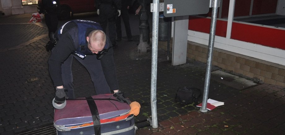 Foto: Der Koffer wurde anschließend von der Polizei wieder verschlossen. Besitzer/in bislang unbekannt. Foto: Hansjörg Rehbein
