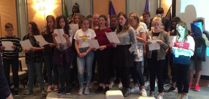 Im September 2017 wurden die Schülerinnen und Schüler des Lina-Hilger-Gymnasiums im Rathaus von Bourg-en-Bresse empfangen, wo sie ebenfalls die Austauschhymne „live“ darboten.