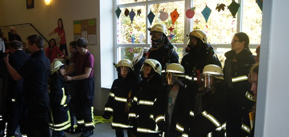 Schulen sind verpflichtet, einmal im Jahr eine Feueralarm-Übung durchzuführen. In diesem Jahr hat die Schulleitung der Grundschule im Stadtteil Bad Münster am Stein mit den Feuerwehrkameraden des Löschbezirks West gemeinsame Sache gemacht. Nachdem der Feueralarm ausgelöst wurde und die Kinder und Lehrer ihre Evakuierung durchführten, hörten sie plötzlich Martinshörner und kurze Zeit später stand die Feuerwehr auf dem Schulhof und baute ihre Wasserleitung auf. Ein Trupp ging unter schwerem Atemschutz in das Schulgebäude vor und rettete zwei Kinder, die zuvor von der Schulleitung informiert wurden und sich im Gebäude vor dem simulierten Brand versteckten.