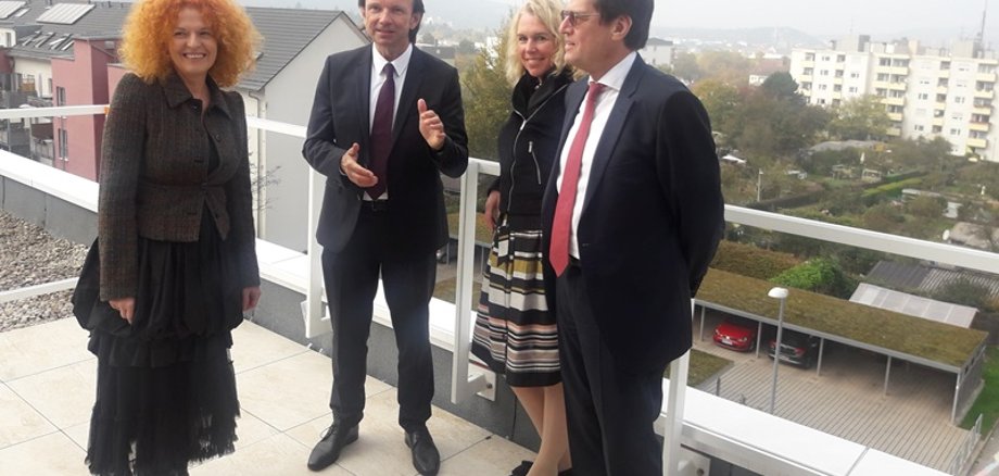 Foto: Die Musterwohnung inklusive Dachterrasse besichtigten Cornelia Augustin, Uwe Birk, Heike Kaster-Meurer und der Spaarkassen-Vorstandsvorsitzende Peter Scholten.
