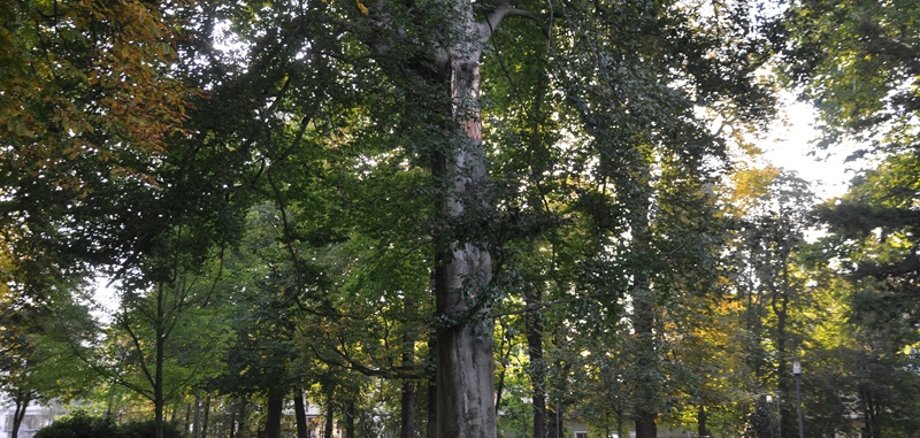 Die städtische Baumkontrolle hatte nach dem Sturmschaden außerdem festgestellt, dass der Pilz „Zunderschwamm“ eine intensive Weißfäule im Stamm verursacht hat. Der Rasen um die Buche ist weiträumig abgesperrt.