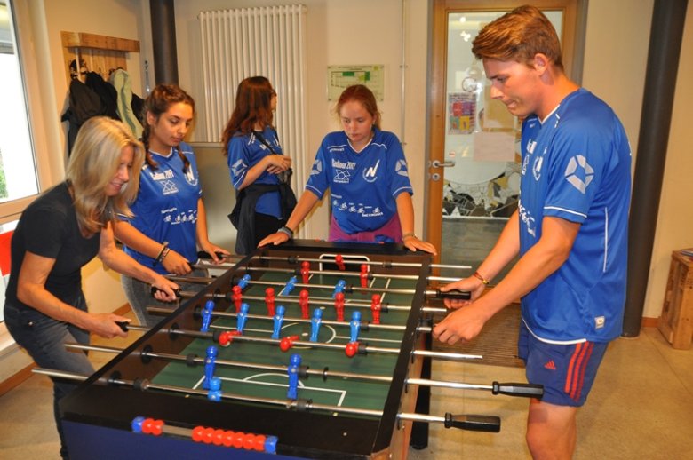 Fotos: Besuch aus Neuruppin hat das Juz in der "Mühle". Spaß am Kicker mit Christine Simmich und eine Stadführung mit Malika Goldt (rechts)