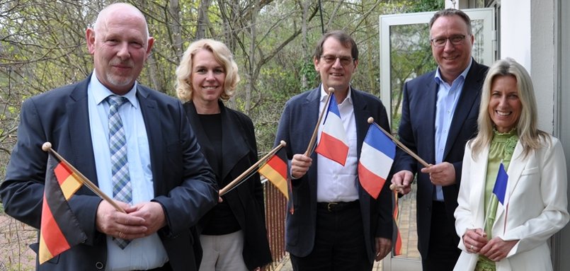 Foto: Sie freuen sich auf das große deutsch-französische Freundschaftsfest: Matthias Heidenreich, Heike Kaster-Meurer, Peter Scholten, Jens Treske (Sparkasse Rhein-Nahe) und Christine Simmich.