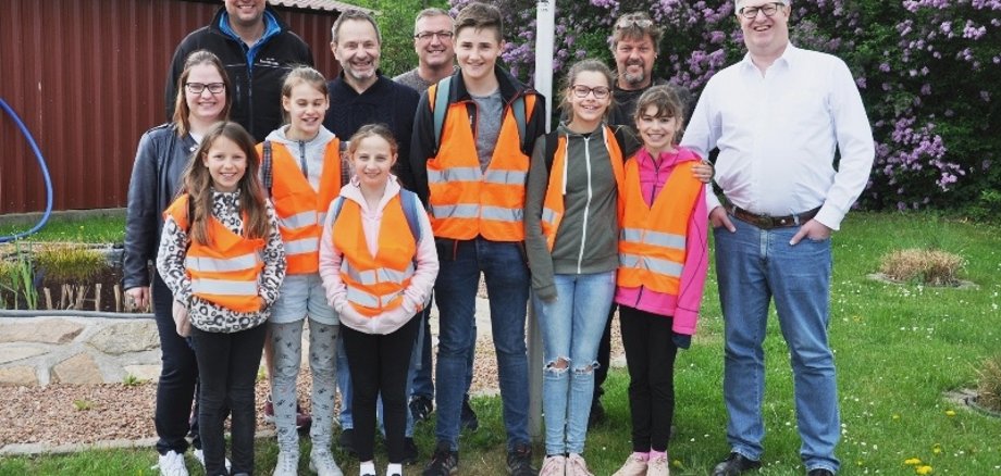 Foto: Bürgermeister Wolfgang Heinrich (rechts) mit den Mitarbeitern des Bauhofs und den Schülerinnen und Schülern des Girl's Days.