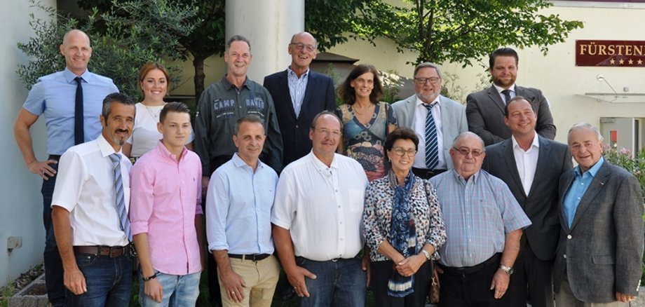 Foto: Danke für die Treue: Jahrmarktsbürgermeister Markus Schlosser (erster von links) ehrte im Beisein von Marktmeister Mathias Weyand (zweiter von links), Kommunalpolitikern und dem Freundeskreis Kreiznacher Johrmarkt die Schausteller (erste Reihe von links) Johann Nock mit Neffe, Hubert Zschaler, Familie Klaus-Dieter Barth und Daniel Beisel für 25 Jahre auf dem Kreuznacher Jahrmarkt.