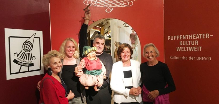Foto oben: Freuen sich auf die neue Sonderausstellung im PuK-Museum, v. l.: Dr. Barbara Heuberger (Salzburger Marionettentheater), OB Dr. Heike Kaster-Meurer, Museumsleiter Markus Dorner mit Theaterpuppe „Osmin“, Ministerpräsidentin Malu Dreyer und Puppenspielerin Heidi Hölzl (Salzburger Marionettentheater).