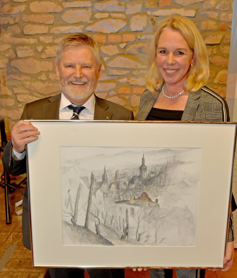 Den Wunsch, dieses Bild aus seinem Arbeitszimmer in den Ruhestand mitnehmen zu dürfen, erfüllte die SWK-Aufsichtsratsvorsitzende und Oberbürgermeisterin Dr. Heike Kaster-Meurer, die dem scheidenden Geschäftsführer Dietmar Canis herzlich für seine Verdienste dankte. Foto: KruppPresse