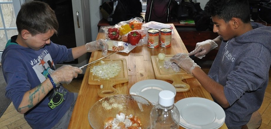Foto oben: Wie viel Arbeit in der Zubereitung eines schmackhaften und eine gesunden Mahlzeit steckt, wissen mittlerweile auch Abdel Hussein und Phil Martin Schwarz zu schätzen.
