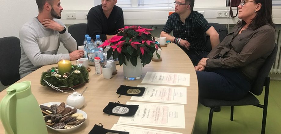 Bei Kaffee und Gebäck wurden Erfahrungen ausgetauscht und jeder erzählte von seinen Wettkampferlebnissen. Beigeordneter Schlosser bedankte sich bei den beiden fürs Kommen und gratulierte für die großartigen sportlichen Leistungen.
