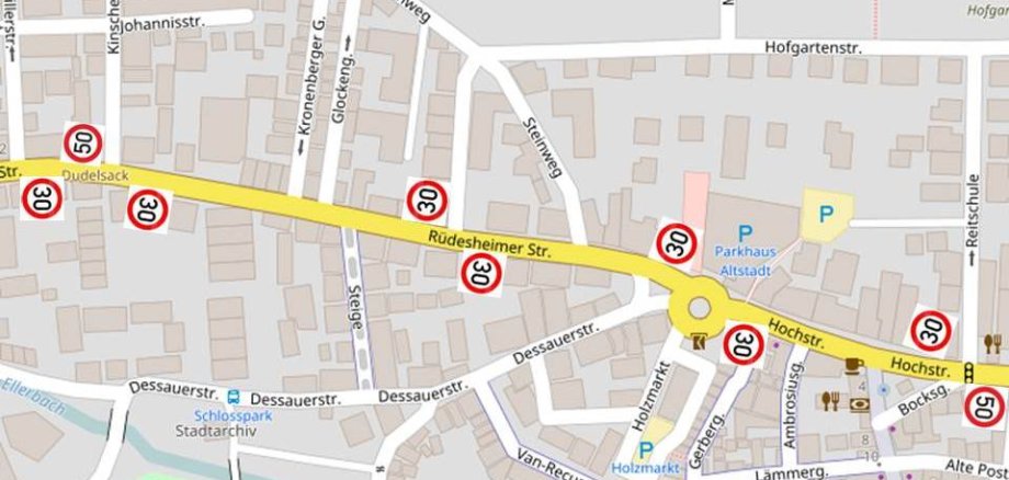 Vor dem Zebrastreifen Rüdesheimer Straße, Höhe Steinweg aus Richtung Rüdesheim werden drei Parkplätze gestrichen. Damit soll die Sichtbarkeit auf die Wartefläche des Fußgängerüberwegs verbessert werden. Es handelt sich hier auch um einen Unfallschwerpunkt: Regelmäßig werden bei vorbeifahrenden Autos wegen der Enge Spiegel beschädigt. Der Wegfall der parkenden Fahrzeuge soll dem entgegen wirken.
