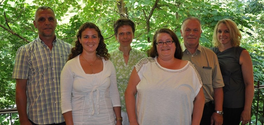 Foto oben: Oberbürgermeisterin Dr. Heike Kaster-Meurer (rechts) freut sich mit (v. l.) Guido Ragg (40 Jahre), Mareike Näher (Beförderung, Amtsleiterin Stadtkasse), Kerstin Püttmann (25 Jahre), Sonja Fenz (Höhergruppierung, neue Kita-Leitung Stromberger Straße) und Volker Bühler (40 Jahre).