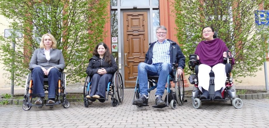 Foto: Auf Wunsch des Zentrums für Selbstbestimmtes Leben (ZSL) testeten im April Oberbürgermeisterin Dr. Heike Kaster-Meurer und Hansjörg Rehbein, Projektkoordinator „kreuznach huerdenlos“, im Rollstuhl die Barrieren und die Barrierefreiheit in der Innenstadt. Begleitet wurden sie von ZSL-Geschäftsführerin Cindy Davi (rechts) und ZSL-Beraterin Irene Alberti.
