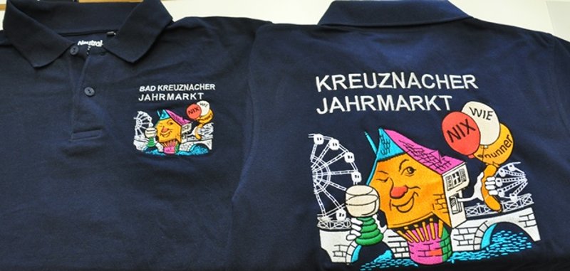 Größen S,L und XL zum Stückpreis von 29 Euro im Infobüro des Stadthauses zu erwerben. Da Bad Kreuznach seit 2013 Fair-Trade-Stadt ist, sind die Textilien aus dem zertifizierten fairen Handel. Das besondere an den Polo-Shirts ist außerdem, dass Vorder- und Rückseite mit