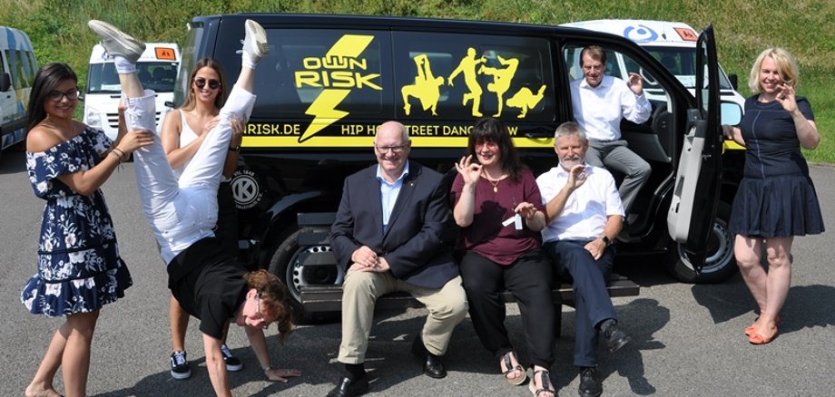 Die Kreuznacher Tanzgruppe „Own Risk“ hat mit dem zweiten Platz bei der Europameisterschaft 2018 im Hip-Hop und Streetdance gerade wieder bewiesen, was in ihr steckt. Nun erhält die Vorzeigegruppe des VfL Bad Kreuznach auf Initiative von Oberbürgermeisterin Dr. Heike Kaster-Meurer endlich ein eigenes Fahrzeug. So können die erfolgreichen Sportler ab sofort mit einem schönen und sicheren Auto zu ihren zahlreichen Auftritten und Wettkämpfen fahren. Gesponsert wurde der Kleinbus unter anderem von der Sparkasse Rhein-Nahe, den Stadtwerken und der Gewobau Bad Kreuznach. Das moderne Design in Schwarz und Gelb wurde von den Werkstätten der Lebenshilfe Bad Kreuznach angebracht.