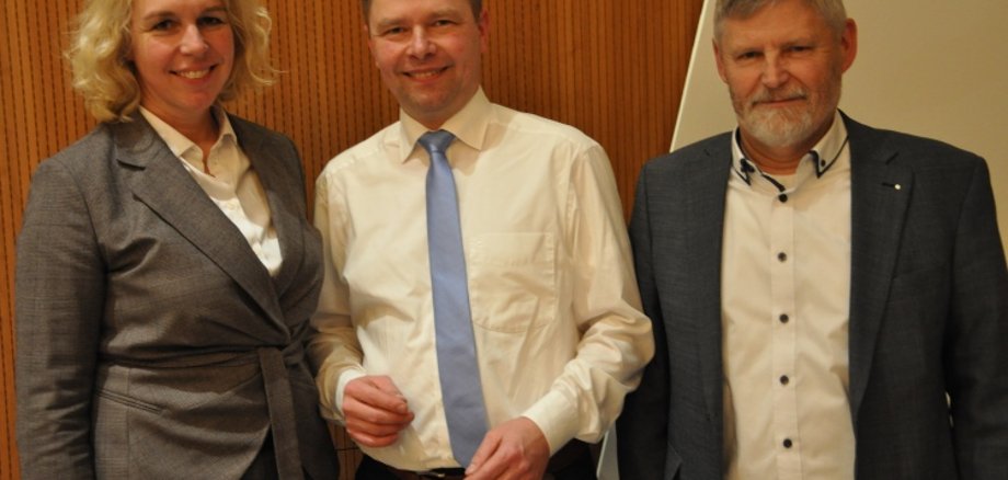 Foto: Christoph Nath (Mitte) mit Oberbürgermeisterin Dr. Heike Kaster-Meurer und Dietmar Canis, Stadtwerke-Geschäftsführer