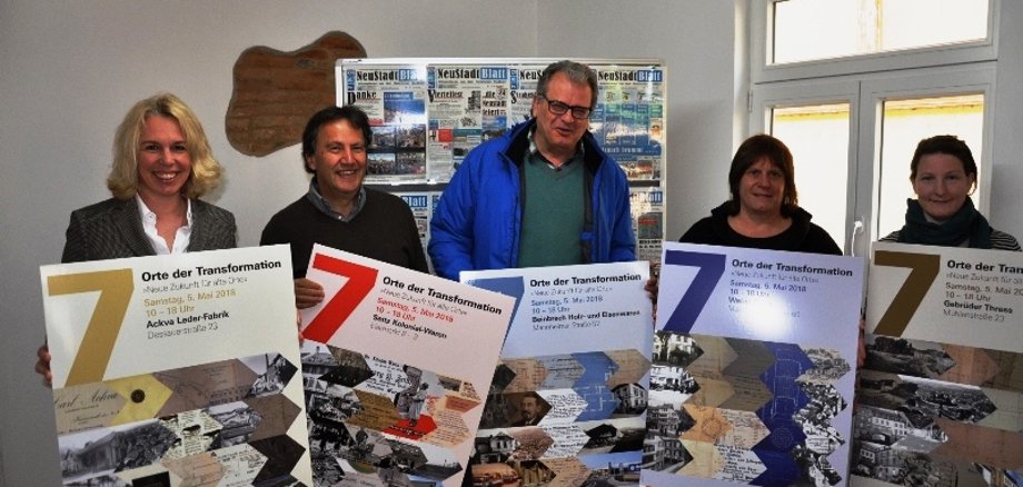 Foto oben: Freuen sich auf das zweite Brückenfest am Samstag: v.l. Oberbürgermeisterin Dr. Heike Kaster-Meurer, zag-Quartiersmanager Rainer Schmitt, Künstler Gernot Meyer-Grönhof, Stadtarchiv-Leiterin Franziska Blum-Gabelmann und Quartiersmanagerin Juliane Rohrbacher