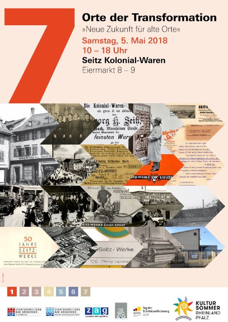 Zum „Symposium: Transformationen und Umnutzungen“, koordiniert von Künstler Gernot Meyer-Grönhof und Stadtarchiv-Leiterin Franziska Blum-Gabelmann, fertigen sieben Künstler und Künstlerinnen ab 12 Uhr Arbeiten an Orten in der Neustadt an, an denen einst Kreuznacher Handwerks- und Industriebetriebe (etwa Seitz Kolonialwaren, Schokoladenfabrik Albert Webel) ihren Anfang nahmen. Das Stadtarchiv hat den Künstlern dazu vorab eine Mappe mit Informationen zu den jeweiligen Firmen zusammengestellt. Ziel der Kunstaktion ist es, künstlerische Antworten auf die Frage nach einer „Neuen Zukunft für alte Orte“ zu finden. Das interessierte Publikum kann bei der Entstehung der Werke dabei sein. Die fertigen Arbeiten werden ab 17 Uhr in und an der alten Poststraße 8 (Eiermarkt) präsentiert.