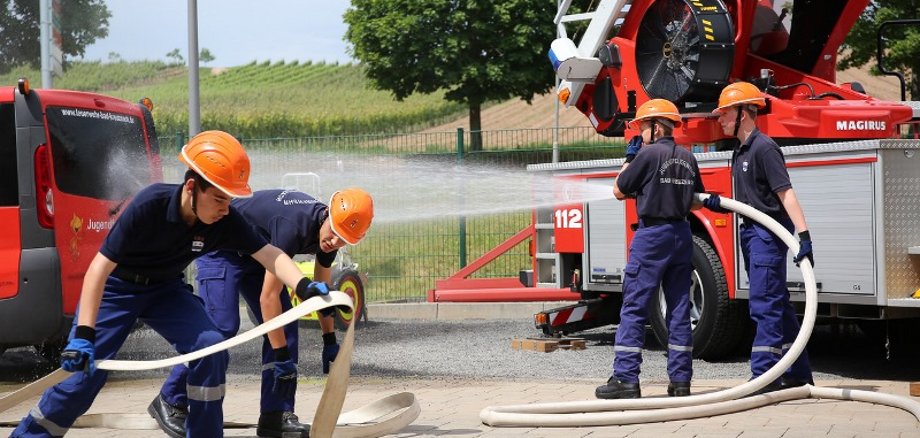 Am Sonntag zeigten die Kreuznacher Flämmchen und die Jugendlichen der Jugendfeuerwehr, was sie gelernt hatten. Gekonnt trugen sie einen Löschangriff zur Brandbekämpfung eines Fahrzeugbrandes vor. Um 14 Uhr nahm Oberbürgermeisterin Dr. Heike Kaster-Meurer die Entpflichtung von Sabrina Weitzmann vor, die seit der Gründung der Kreuznacher Flämmchen der Bambinigruppe vorstand. Den Staffelstab übergab sie ihrem Nachfolger Lars Dillenberger, der bereits seit einigen Jahren bei den Flämmchen als Ausbilder mitarbeitet. Zu seinen Vertretern wurden Karin Braun und Sascha Elstner ernannt. Frederik Jost wurde als Mitglied des Löschbezirks Süd verpflichtet. Er ist ein Gründungsmitglied der Kreuznacher Flämmchen und war von Anfang an dabei. Auch der Kamerad Alexander Petry aus dem Löschbezirk Ost ist ein Mann der ersten Stunde.