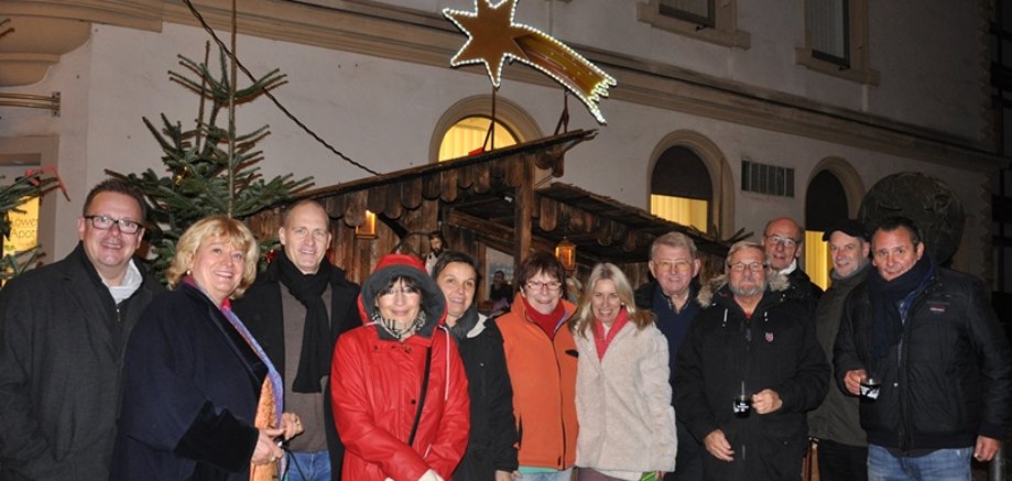 Foto: Schausteller, Stadtratsmitglieder, die französischen Gäste Jeannine Merle und Céline Ronger (5. und 6. v.l.) und ihre Betreuerinnen versammelten sich mit dem Beigeordneten Markus Schlosser (3.v.l.) und dem Vorsitzenden von Pro City (li.), Dirk Alsentzer, zum Eröffnungsfoto. Foto: Hansjörg Rehbein