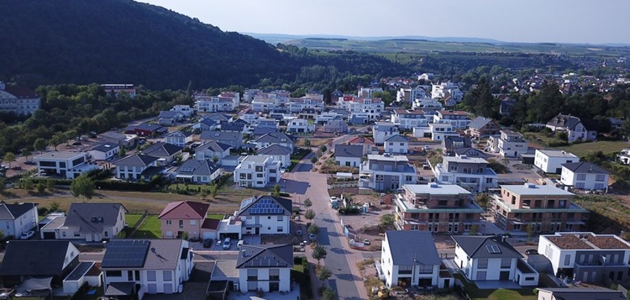 Foto ganz oben: Im neuen Wohngebiet Rheingrafenblick (Foto: Juli 2018) werden alle Seitenstraßen der Hans-Staab-Straße zu "Spielstraßen".