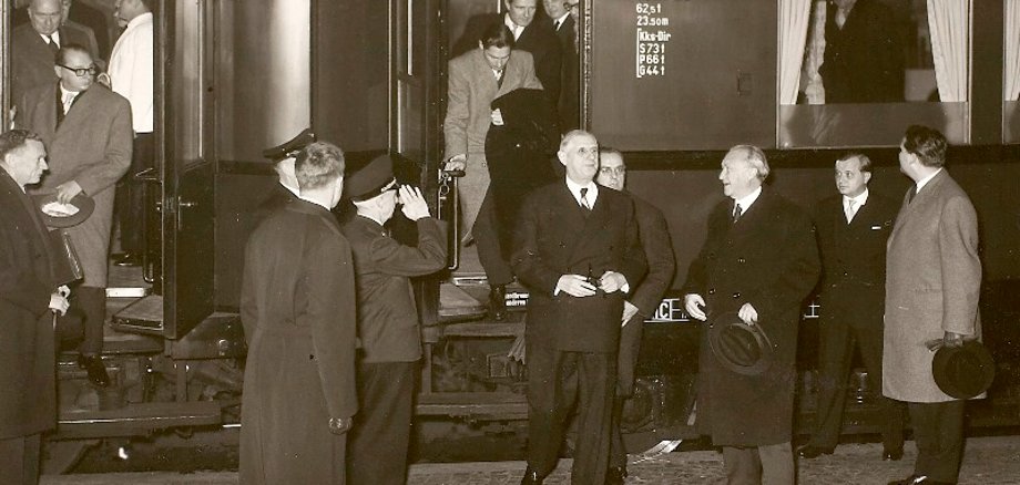 Foto oben: Charles de Gaulle und Konrad Adenauer trafen 1958 mit einem Sonderzug am Bad Kreuznacher Bahnhof ein.