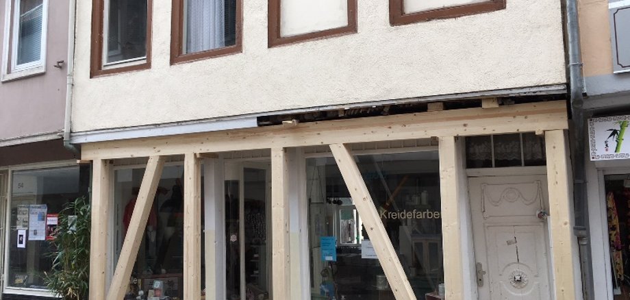 Wegen massiver Zweifel an der Standsicherheit des Hauses forderte die Bauaufsicht ein Standsicherheitsgutachten ein. Das Gutachten liegt seit Mittwoch vor und fällt negativ aus. Nach einem sofortigen Ortstermin erweiterte die Bauaufsicht die Nutzungsuntersagung auf das Erdgeschoss. Weitere Abstützungsmaßnahmen zwischen Ellerbach und Erdgeschoss werden folgen, da dort mehrere tragende Balken gebrochen sind. Eingezogene Stahlträger wurden äußerst unfachmännisch verbaut.