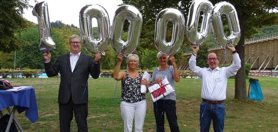 Klaus-Dieter Dreesbach gratulierte und sagte: „Sie waren bis auf zehn Tag diesen Sommer jeden Tag schwimmen, dass freut uns sehr, solche Gäste wünscht man sich. Beim Besucherrekord hat uns natürlich auch das Wetter in die Karten gespielt, aber auch die einmalige Lage des Freibades im Salinental, direkt neben den Gradierwerken und der Nahe, lockt Jung und Alt in unser Bad. Hier macht Schwimmen einfach Spaß.“