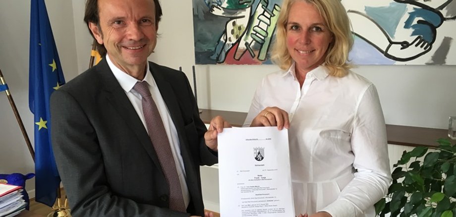 Foto oben: Oberbürgermeisterin Dr. Heike Kaster-Meurer und DBA-Vorstand Uwe Birk haben am Freitag den Kaufvertrag unterzeichnet.