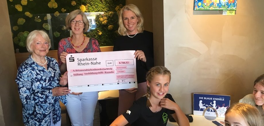 „Es ist großartig, wie sich die Schüler und Schülerinnen des Lina-Hilger-Gymnasiums seit so vielen Jahren für Kinder und Jugendliche in Ruanda engagieren“, freute sich Kaster-Meurer. Mit ihr freute sich Elisabeth Eminger, Gründerin und Vorsitzende der Stiftung Ausbildungshilfe Ruanda, die der Schule zum Dank ein Gemälde aus Ruanda überreichte. Die knapp 8800 Euro fließen in das seit langem geplante Berufsausbildungszentrum für Touristik und Informatik in Ruanda. „Die Stiftung hilft Schülern, im eigenen Land eine Arbeit zu finden − bei der momentanen Flüchtlingsproblematik sicher eine gute Art zu helfen“, so Lehrerin Guntrun Bencker, die das Projekt von Seiten der Schule organisiert.