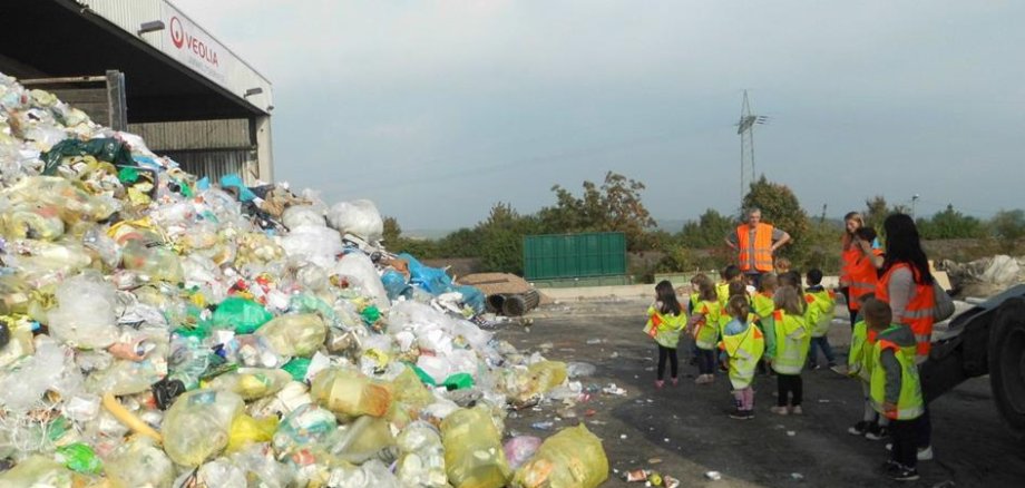 Daraus entwickelte sich ein ganzes Projekt, dessen Höhepunkt der Besuch des Abfallunternehmens Veolia war. Die Kinder waren beeindruckt von den riesigen Müllbergen und von den Fahrzeugen, die diese sortieren. Abschließend legten die Erzieherinnen mit den Kindern in der Kita einen „Müllfriedhof“ an. Der Müll kann von Zeit zu Zeit ausgebuddelt werden. So werden die Kinder immer daran erinnert, wie lange die Natur braucht, Plastik zu zersetzen.
