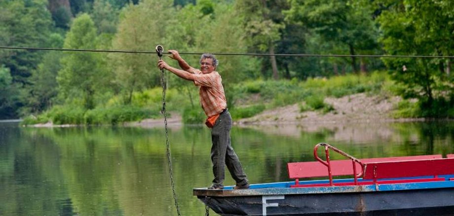 Für Verbindung zwischen Bad Münster am Stein und dem Huttental und zur Burgruine Rheingrafenstein sorgt seit fast 290 Jahren die Fähre. Es ist die letzte handgezogene Fähre des Landes. Fährmann Hajo Gellweiler wird ganztags von 10 bis 17 Uhr den „Fährgästen“ die Historie des Fährbetriebs erläutern. Die Fähre wurde gerade erst vom Magazin „Geo“ zu den interessanten Ausflugstipps Deutschlands gekürt. Auch Kultur verbindet: Daher liegt es nahe, die Umnutzung des alten Landwirtschaftsgutes in der Hüffelsheimer Straße zum Museum für PuppentheaterKultur zu thematisieren. Um 11.30 Uhr erläutern die am Bau maßgeblich beteiligten Architektinnen, Frau Marx und Frau Sendrowski, die verschiedenen Phasen des Umbaus. Museumsleiter Markus Dorner führt um 14 und um 18 Uhr durch die Ausstellung „Das historische Hausmarionettentheater“ und spielt dabei das Märchen vom Kalifen Storch.