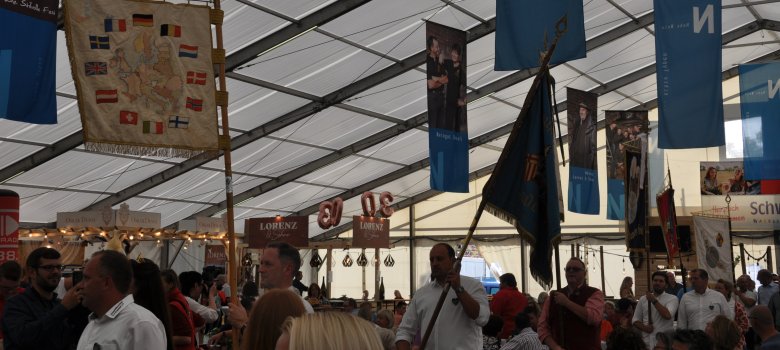 Im Naheweinzelt angekommen, schmückten die Schausteller den Einzug wieder mit einem eindrucksvollen Fahneneinmarsch.