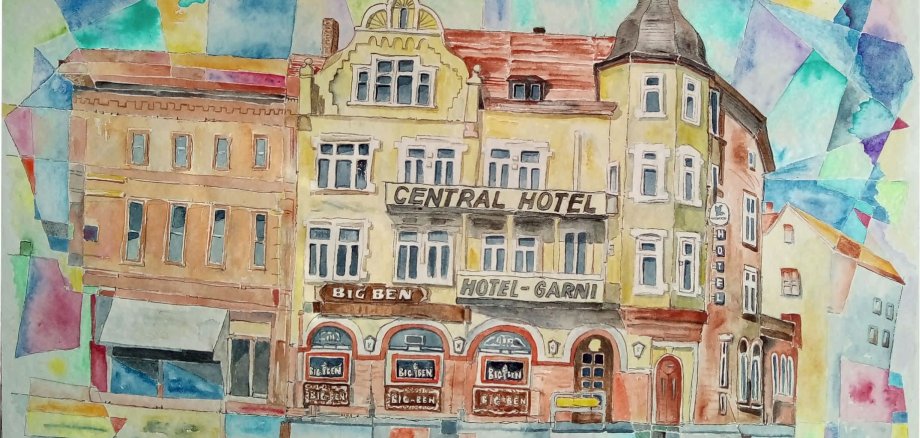Zu den meisten Plätzen besteht eine persönliche Erinnerung und alle haben eine eigene Geschichte. Diese 16 Bilder der Serie sind ausschließlich in Aquarelltechnik angelegt. Begleitend stellt der Hobby-Historiker Steffen Kaul alte Fotos der einzelnen Motive zur Verfügung, die neben den gemalten Bildern gezeigt werden.