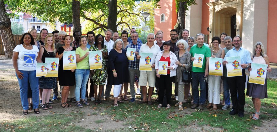 Großes Foto: Freuen sich auf bunte Interkulturellen Wochen in Bad Kreuznach: Dirk Basmer (Projektkoordinator und Mitarbeiter des Sozialamts, zweiter von rechts) und Siegfried Pick (Projektkoordinator vom Pfarramt für Ausländerarbeit, Mitte mit weißem Hemd) und die Mitglieder der Arbeitsgruppe. Beigeordneter und Sozialdezernent Markus Schlosser war verhindert.