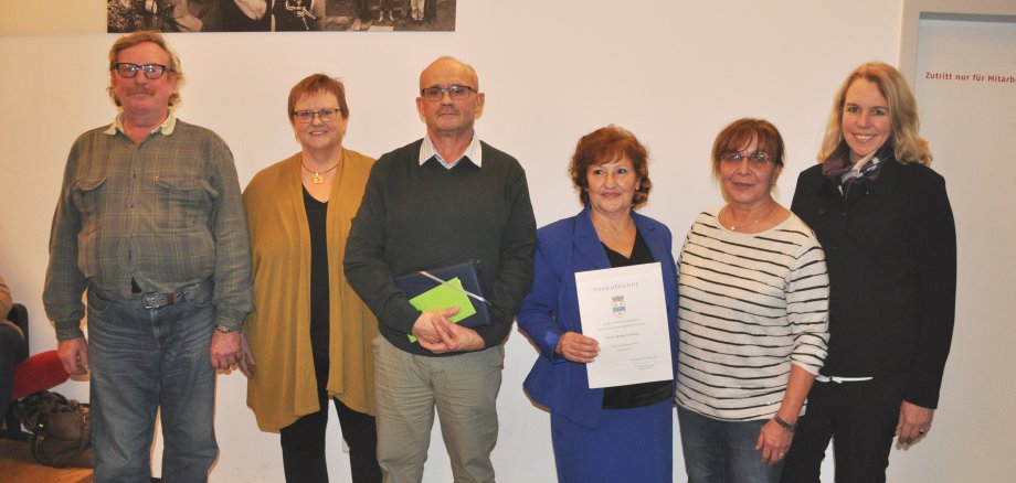 Foto: Zum Erinnerungsfoto mit Oberbürgermeisterin Dr. Heike Kaster-Meurer (rechts) stellten sich Johann Frenz, Corinna Peerdeman, Michael Gehring, Natalia Weber und Claudia Senss.