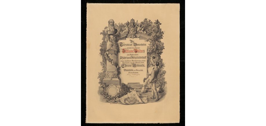 Die Ehrenurkunde wurde vom Stadtarchiv für das Ortsarchiv von Bosenheim als Zeugnis der Bosenheimer Vereinskultur angekauft.