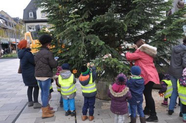Fotos: Festlich geschmückt für die Weihnachtszeit: Die Kinder der Bad Kreuznacher Kitas freuten sich, den großen Weihnachtsbaum auf dem Kornmarkt zu dekorieren.