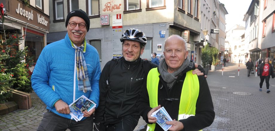 Foto: Nicht nur die Radfahrer müssen Rücksicht nehmen, sondern auch die Fußgänger, sind sich Thomas Fischer (links) und Hermann Holste mit Joachim Schneider einig.