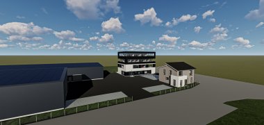 Haus 4.0/FUTUREhaus investiert auf einer ehemaligen Brache entlang der Otto-Meffert-Straße fünf Millionen Euro. In Nachbarschaft des Leonardo-Hotels entstehen eine Produktionshalle, eine Halle für Modulfertigung, ein Firmengebäude sowie ein Musterhaus. Dabei legt das Unternehmen Wert auf ein ästhetisch anspruchsvolles, harmonisches Ensemble. Jährlich sollen hier die passenden Module für 150 klimapositive Häuser entstehen. Sämtliche Dächer sind komplett mit Photovoltaik-Modulen bestückt. Allein auf der Produktionshalle werden 100 Kilowattpeak PV-Leistung installiert.
