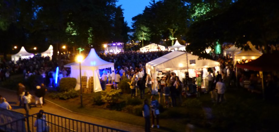 Foto (2018): Gut besucht: Das Weinfestival im Kurpark bei Nacht.