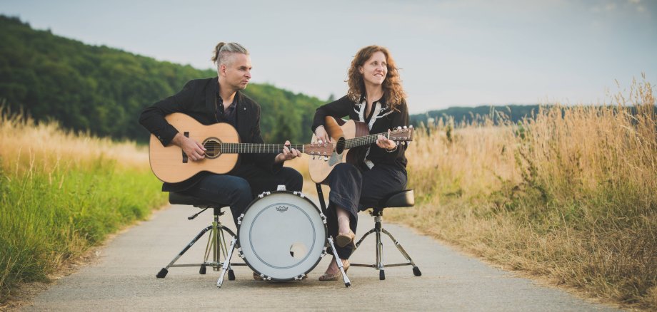 So ungewöhnlich wie der Bandname ist auch das Auftreten des Duos: Die beiden Musiker klingen zusammen wie eine vollständige Band. Julia Oschewsky singt und spielt dazu Gitarre oder Bass-Ukulele, Gitarrist Marc Kluschat bedient gleichzeitig ein extra in den USA handgebautes Fußschlagzeug und sorgt für die Backing-Vocals. Das ermöglicht eine ungewohnt große dynamische Bandbreite. Die eigenen Songs sind oft von persönlichen Erlebnissen inspiriert, wie zum Beispiel der Titel „Einfach da“, eine Hommage an den Rhein, entstanden auf Julia Oschewskys vielen Zugfahrten zwischen Bingen und Amsterdam. „Kleingartenanlage“ liebt es auch, bekannte Hits im eigenen Akustik-Stil zu covern. „Das ist für uns wie eine große Spielwiese“, sagen die beiden Musiker.