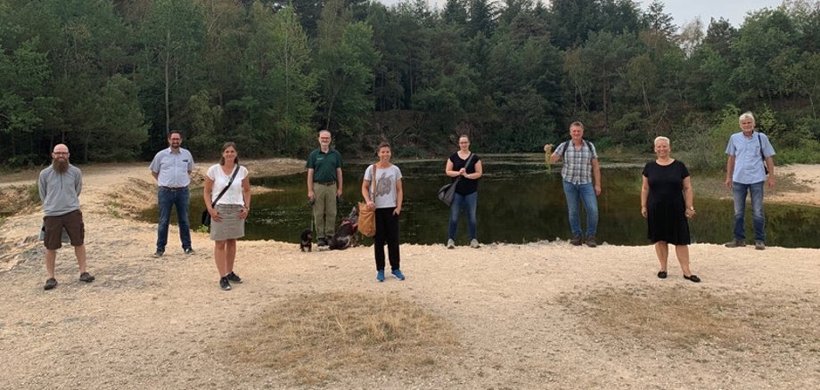 Foto, v.l.: Daniel Hoffmann (Befischung), Michael Fluhr (Amt für Wirtschaftsförderung und Liegenschaften, Stadt Bad Kreuznach), Andrea Silvestri (2. Kreisbeigeordnete), Ralph Barme (Forstrevier Nahe), Vera Schmidt (Landesamt für Umwelt), Sabrina Ockenfels, Dr. Roland Pietsch (beide SGD Nord), Nicole Morsblech (Vizepräsidentin SGD Nord), Rudolf Twelbeck (Ökologische Baubegleitung).