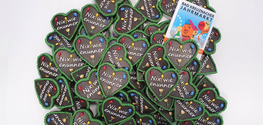 Foto: Die typischen "Nix wie enunner"-Ansteckherzen gibt es auch dieses Jahr.