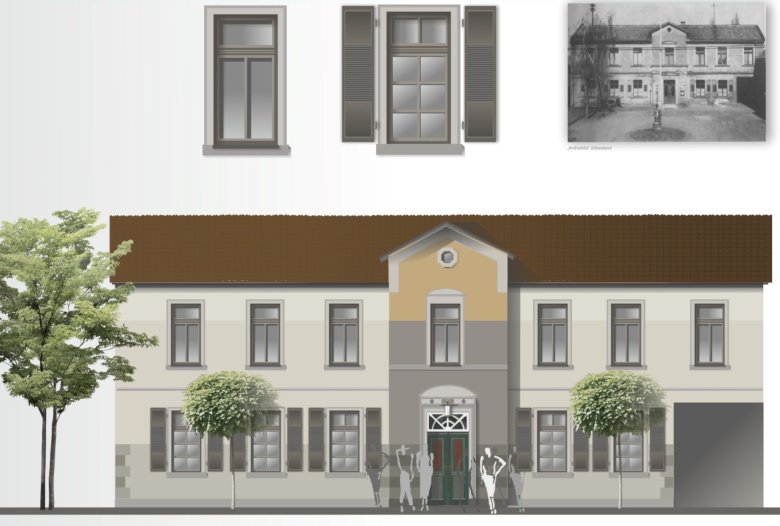 Dazu werden die stilistisch unpassenden Industriefenster entfernt und die Eingangstür sowie das Dach denkmalgerecht erneuert. Die farbliche Gestaltung der Fassade erfolgt in Grau- und Beigetönen. Im Innern des Rathauses werden die Räume, die der Ortsbeirat nutzt, in der energetischen wie digitalen Ausstattung modernisiert und bleiben dem Gremium als Versammlungsstätte erhalten. Auch die zwei Wohnungen im Obergeschoss werden saniert.
