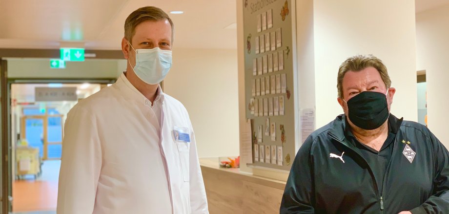 Foto: Priv.-Doz. Dr. Markus Paschold (links) ist sehr zufrieden mit dem Genesungsprozess von Dieter Häusler.