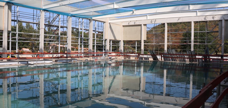 Archivfoto: Das Schwimmerbecken im neuen Salinenbad war beim Richtfest im September bereits probeweise mit Wasser gefüllt.