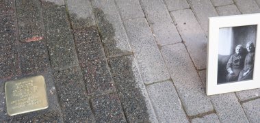 Schülerinnen des Lina-Hilger-Gymnasiums aus Briefen von Auguste Oppenheimer an deren Familie vor. „Tante Gustchen“ wurde im Alter von 79 Jahren am 27. Juli 1942 in das Konzentrationslager Theresienstadt deportiert, wo sie knapp zwei Monate später ermordet wurde. Ihr Schwester Bertha, 1926 verstorben, ist auf dem jüdischen Friedhof begraben. Bei beiden Zeremonien sprachen der Kantor der jüdischen Gemeinde Noam Ostrovsky und Mitglieder der Gemeinde Gebete zum Gedenken an alle Opfer des Nationalsozialismus.